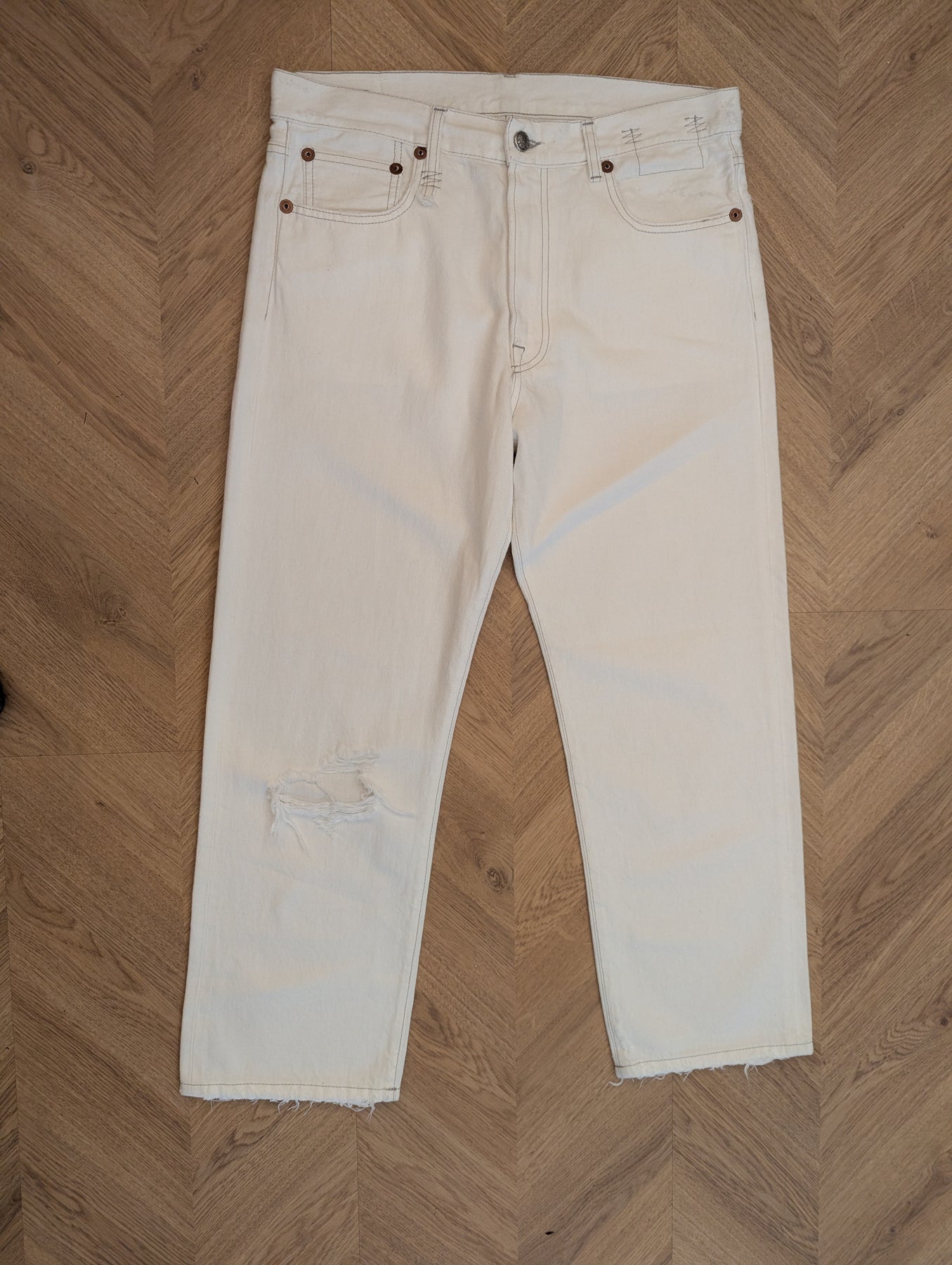 Condition: Excellent preloved condition no signs of wear. Original RRP £548. 100% cotton. Italian brand R13 is synonymous with quality and design creativity. These ankle grazer jeans feature frayed hems and ripped knee detail