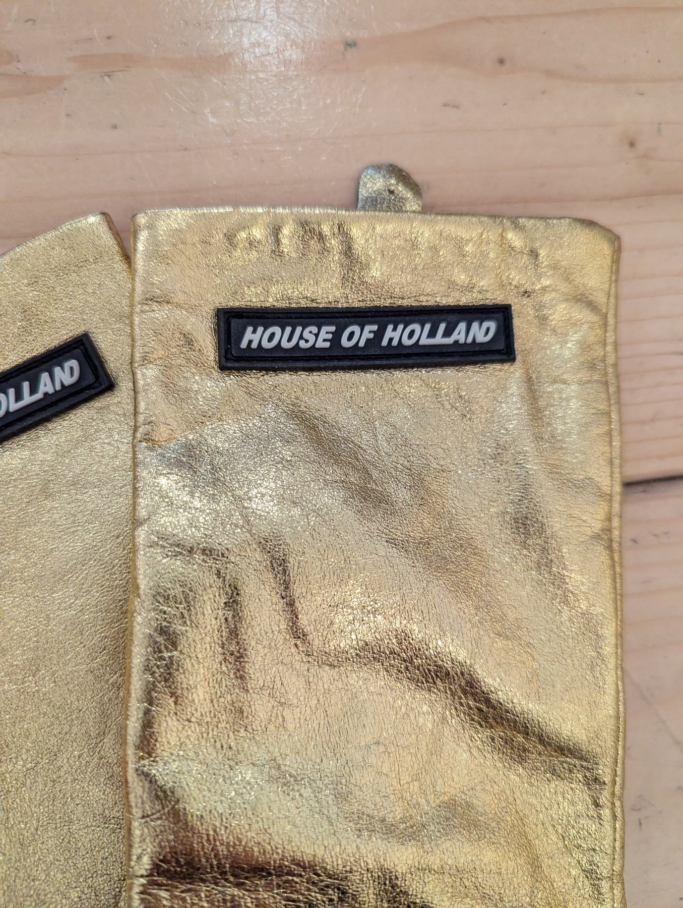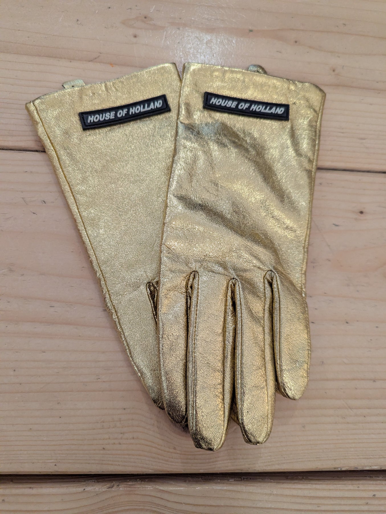 Condition: Excellent preloved condition. Original RRP £79.These metallic leather gloves from House of Holland will upgrade your glove collection from cosy to cool