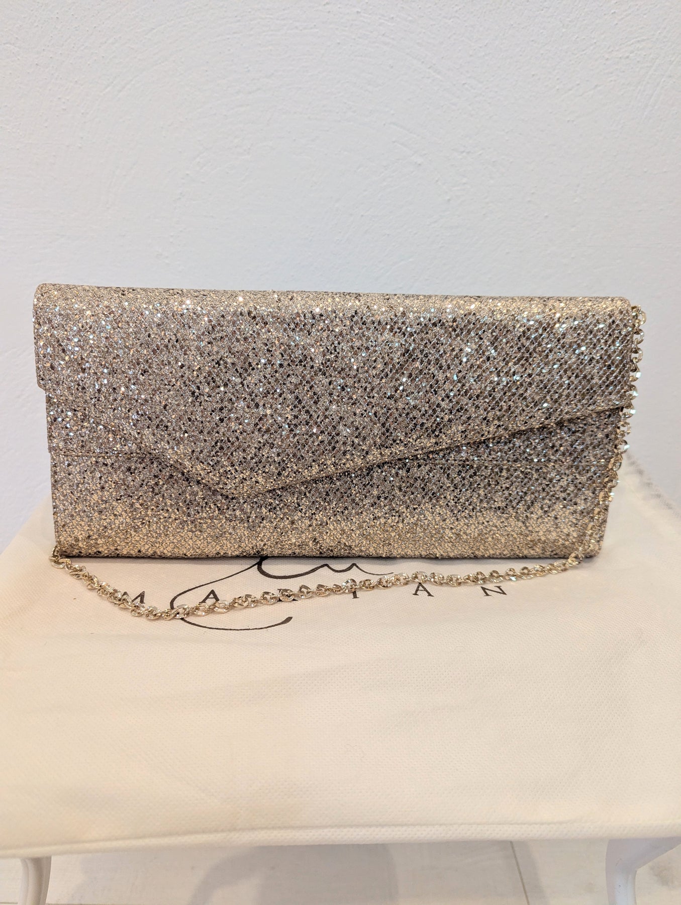 Condition: Excellent preloved condition no signs of wear. Glitter envelope clutch with optional shoulder strap