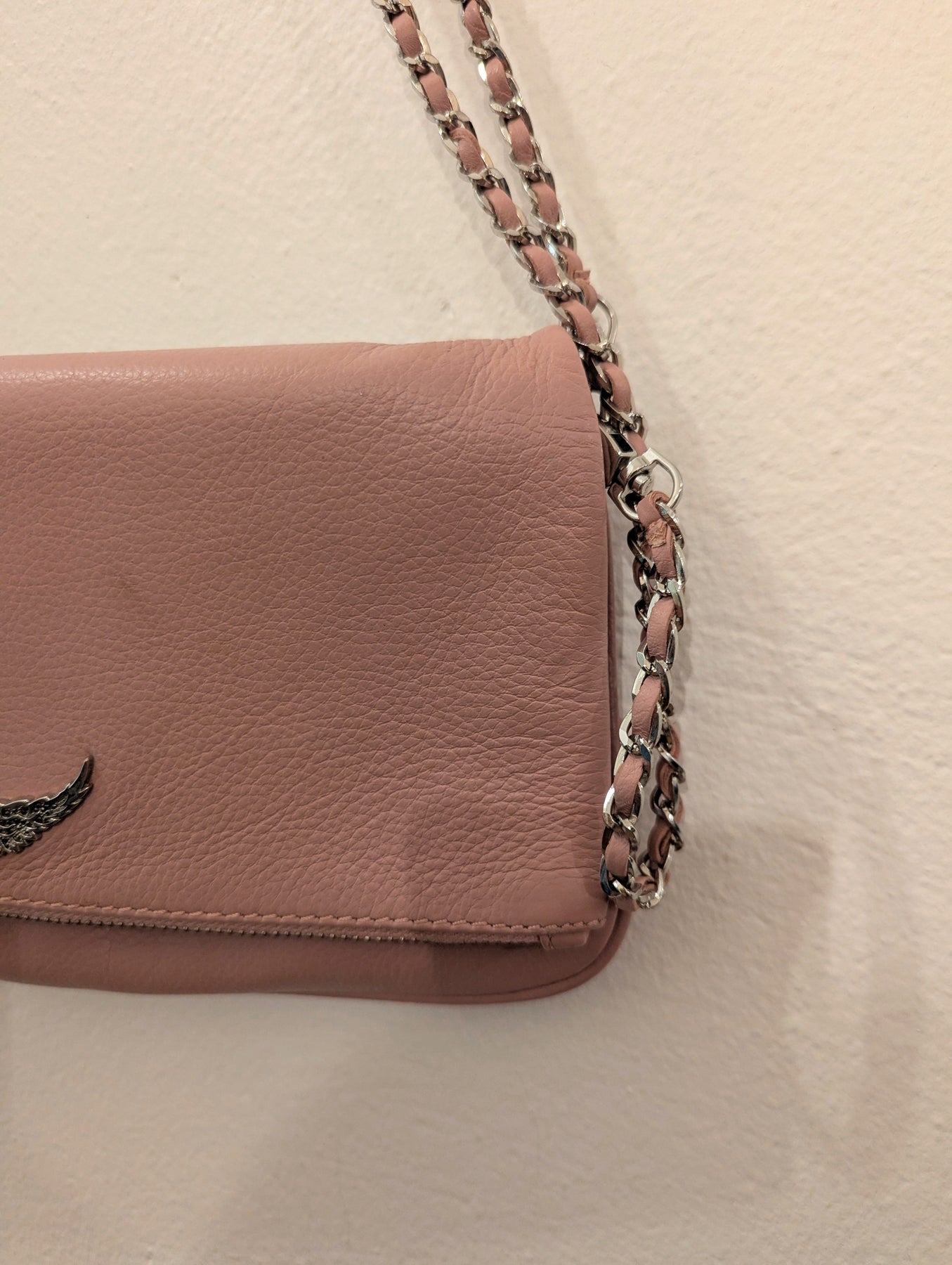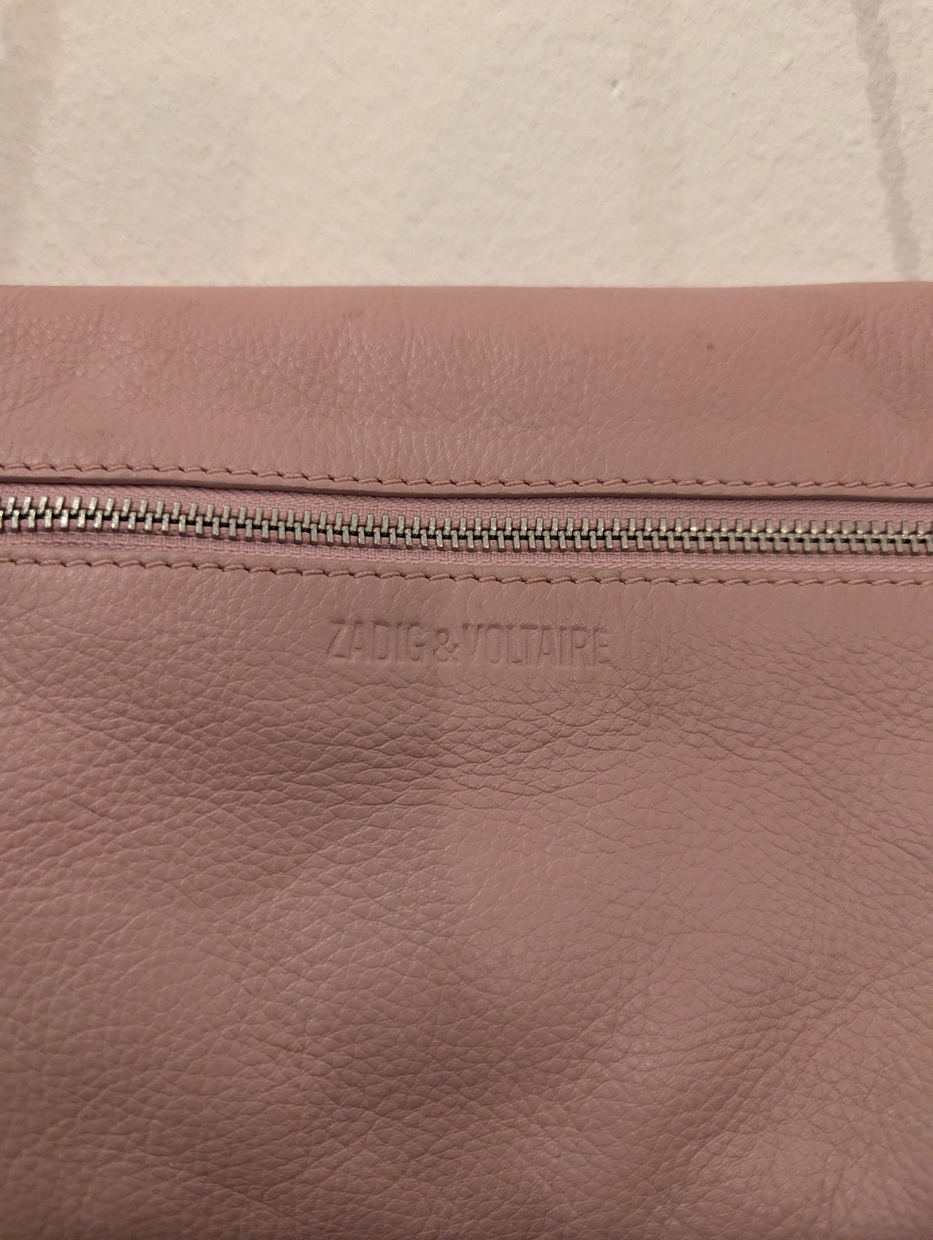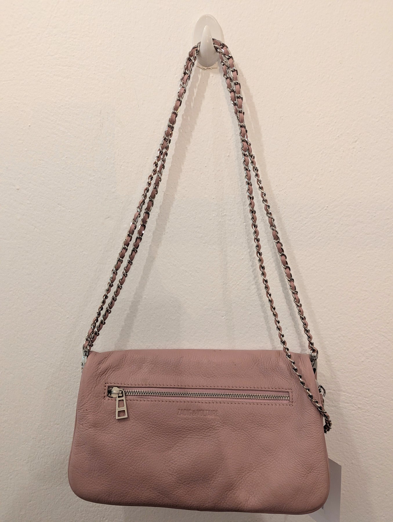 Condition: Excellent preloved condition, some small marks as shown. Classic Zadig & Voltaire Medium Rock bag in light pink leather with silver tone hardware. One long strap ideal for crossbody wear as well as a shorter one for over the shoulder wear.