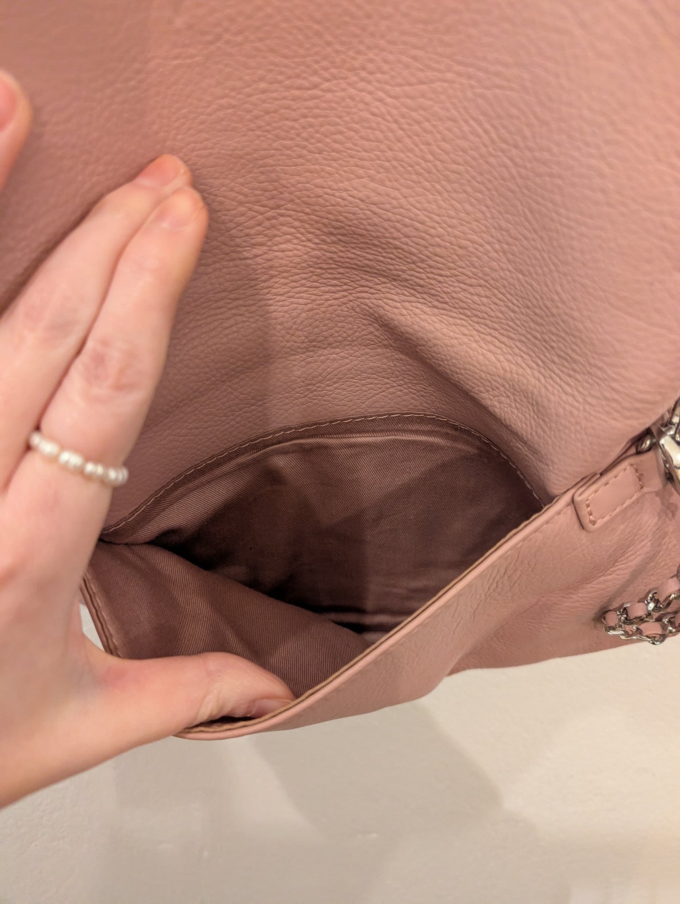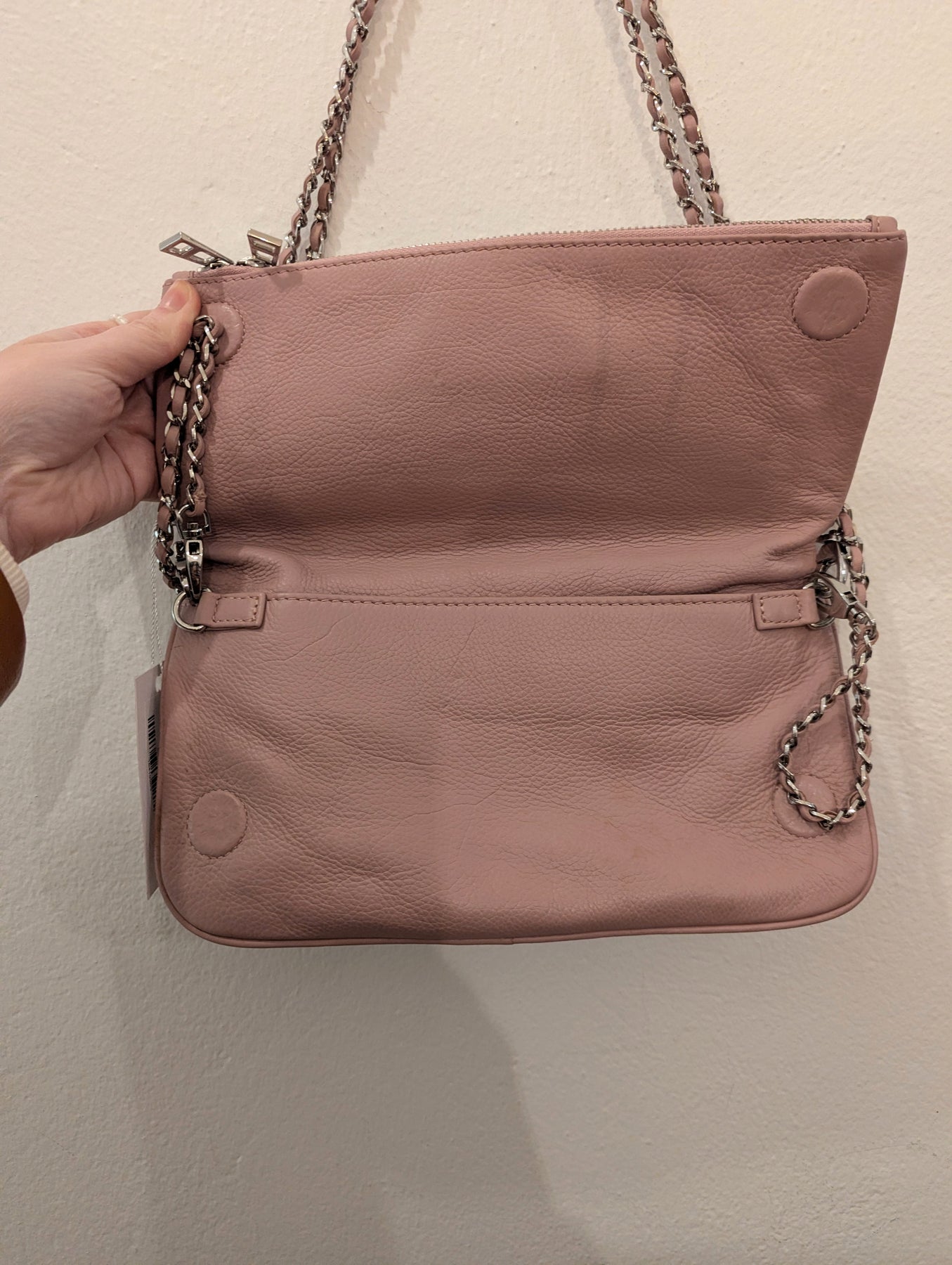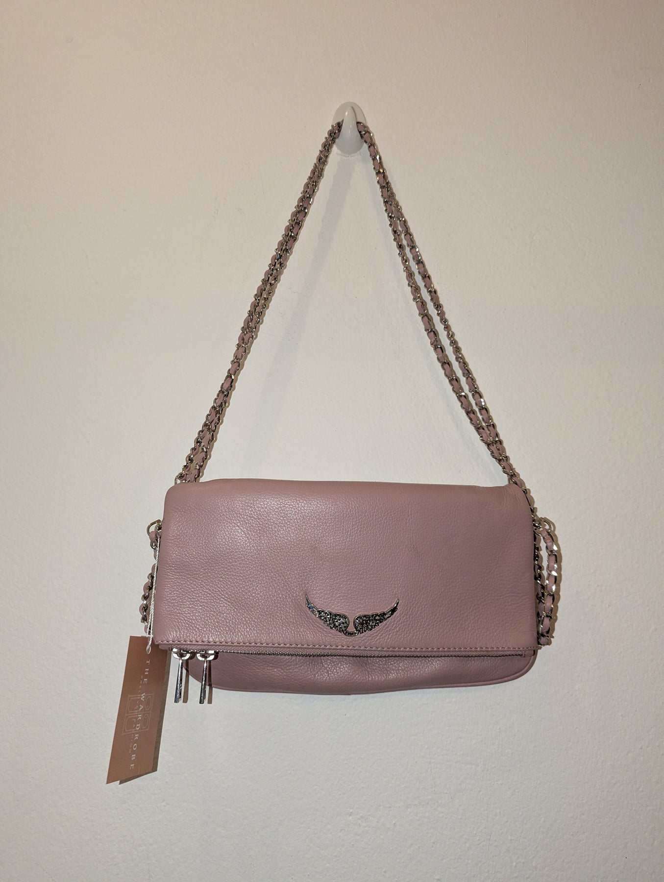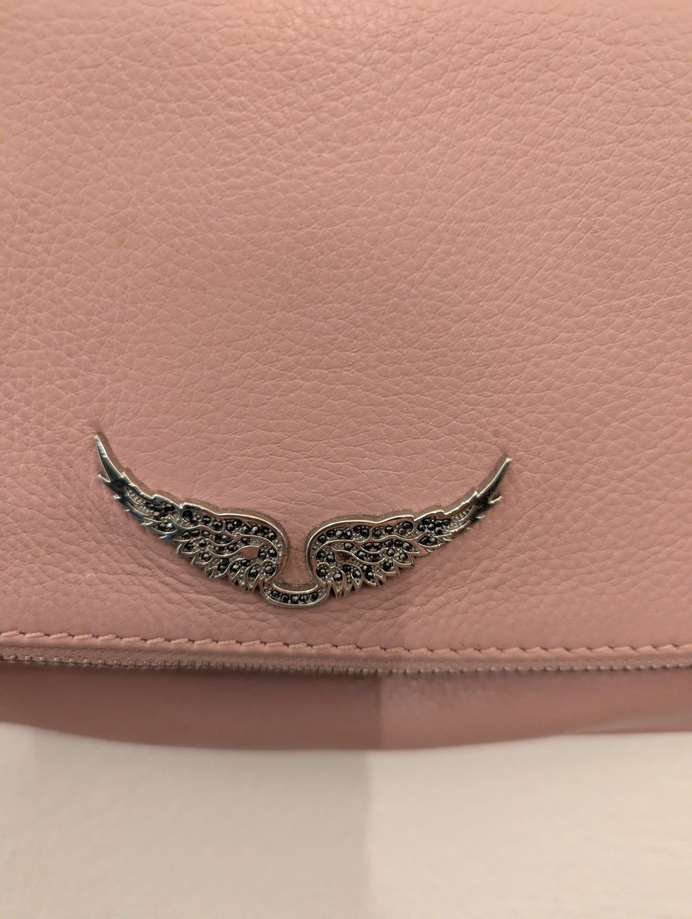 Condition: Excellent preloved condition, some small marks as shown. Classic Zadig & Voltaire Medium Rock bag in light pink leather with silver tone hardware. One long strap ideal for crossbody wear as well as a shorter one for over the shoulder wear.