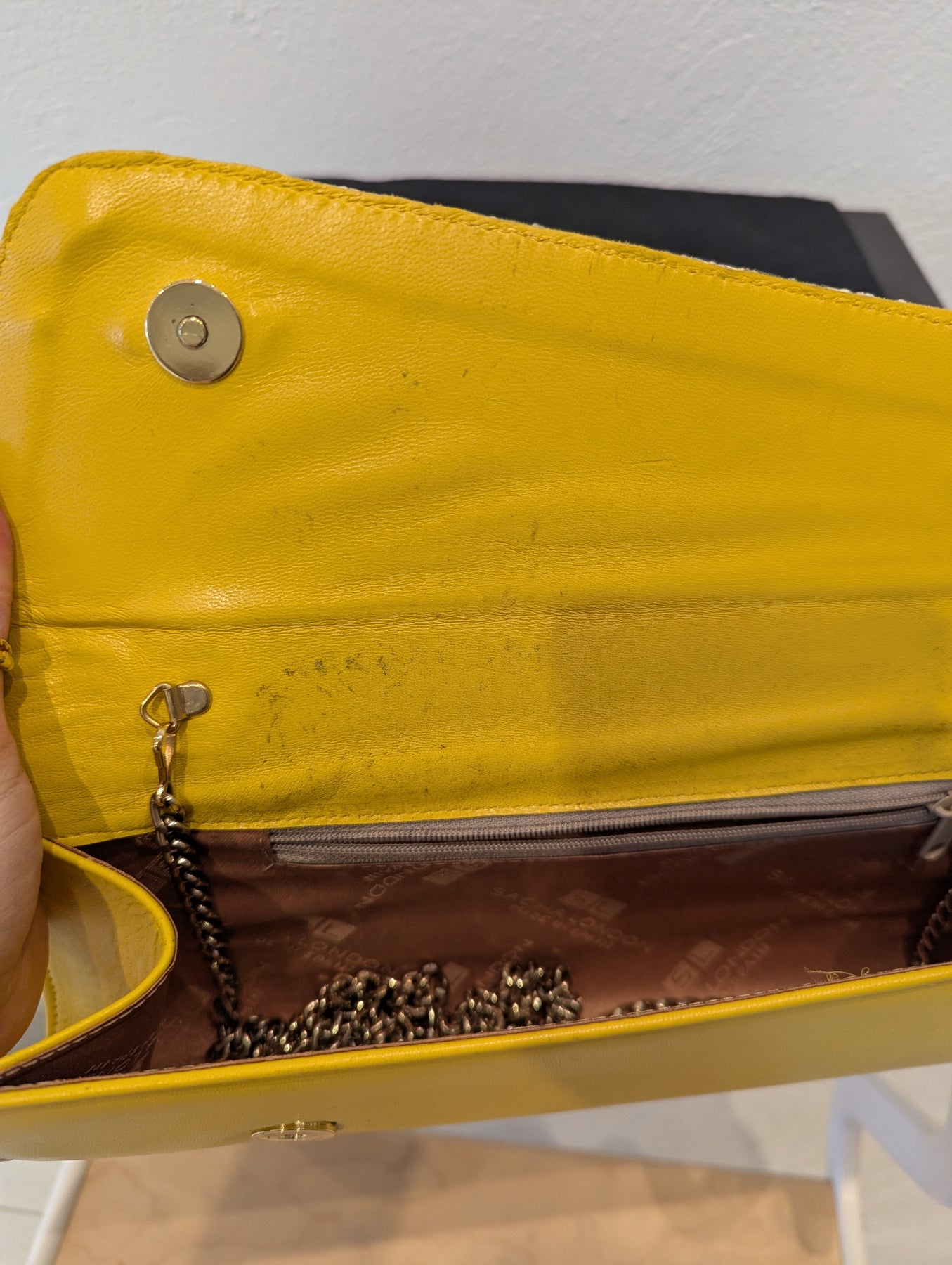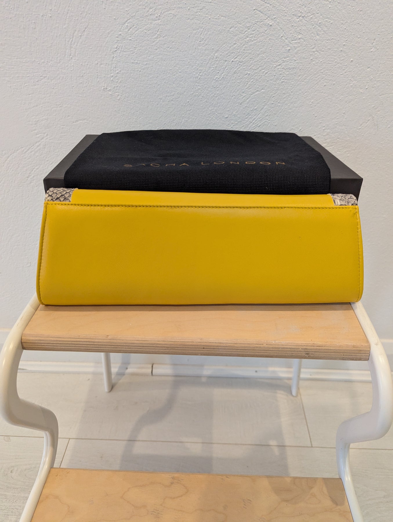 Condition: Excellent preloved condition, some marking on inside of bag. A slimline clutch with removable chain strap in yellow with snakeskin detailing