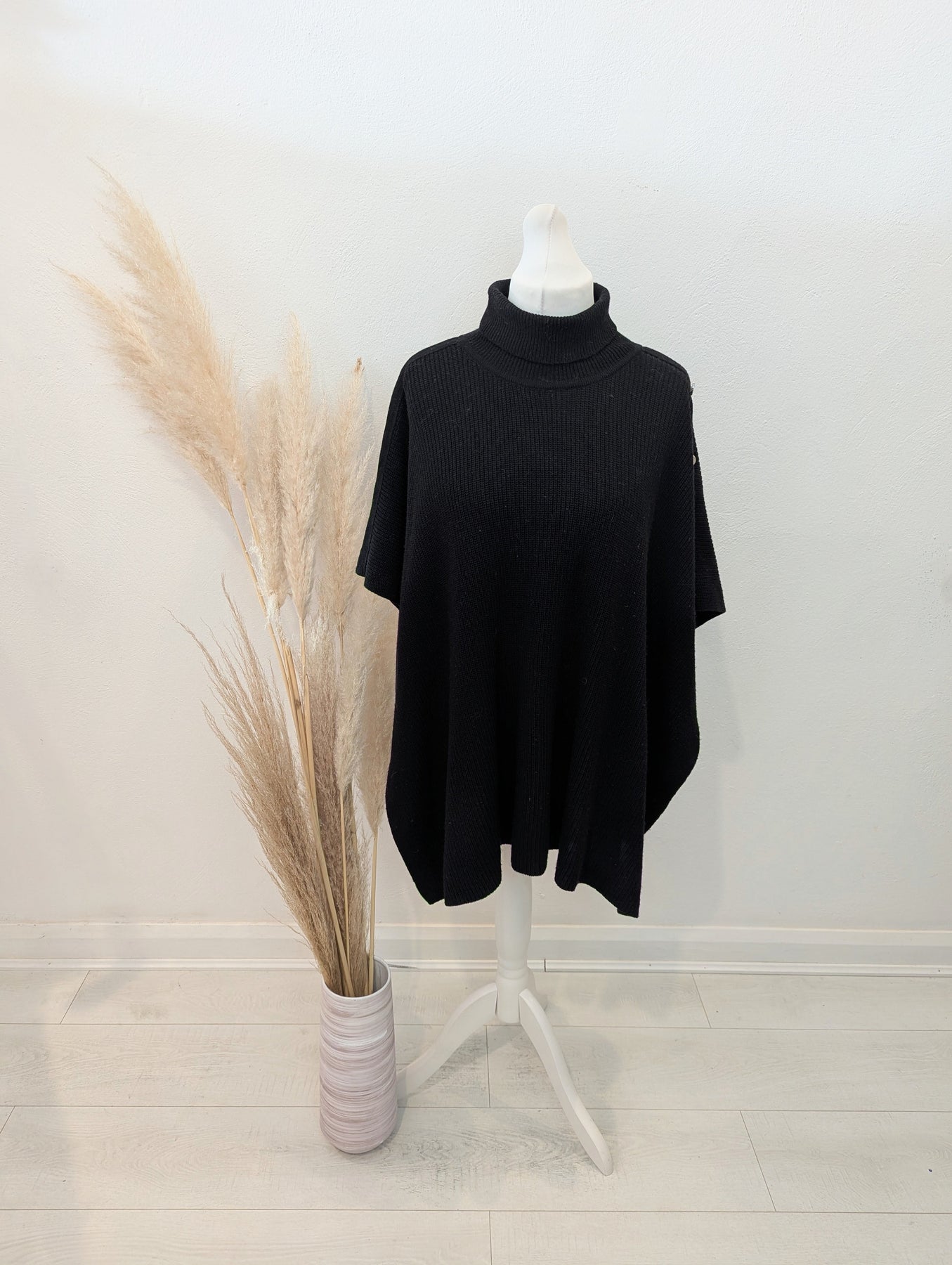 Condition: Excellent preloved condition no signs of wear. BOSS Womenswear poncho adds cozy warmth in cool conditions. Rollneck design with silver button sleeve detail