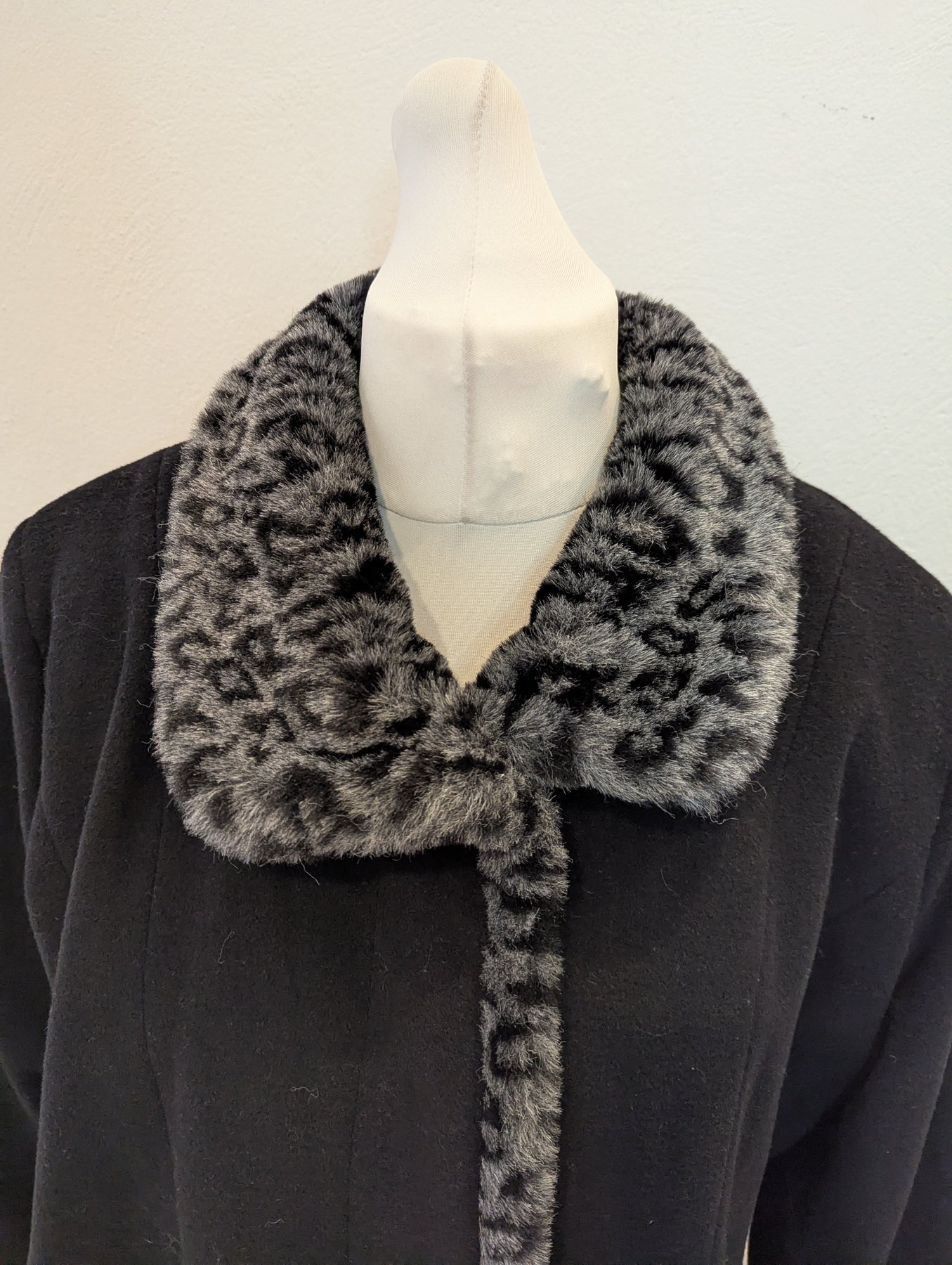 Condition: Excellent preloved condition no signs of wear. Stunning vintage David Barry wool coat with faux fur trim. 65% wool, 30% polyester, 5% cashmere.