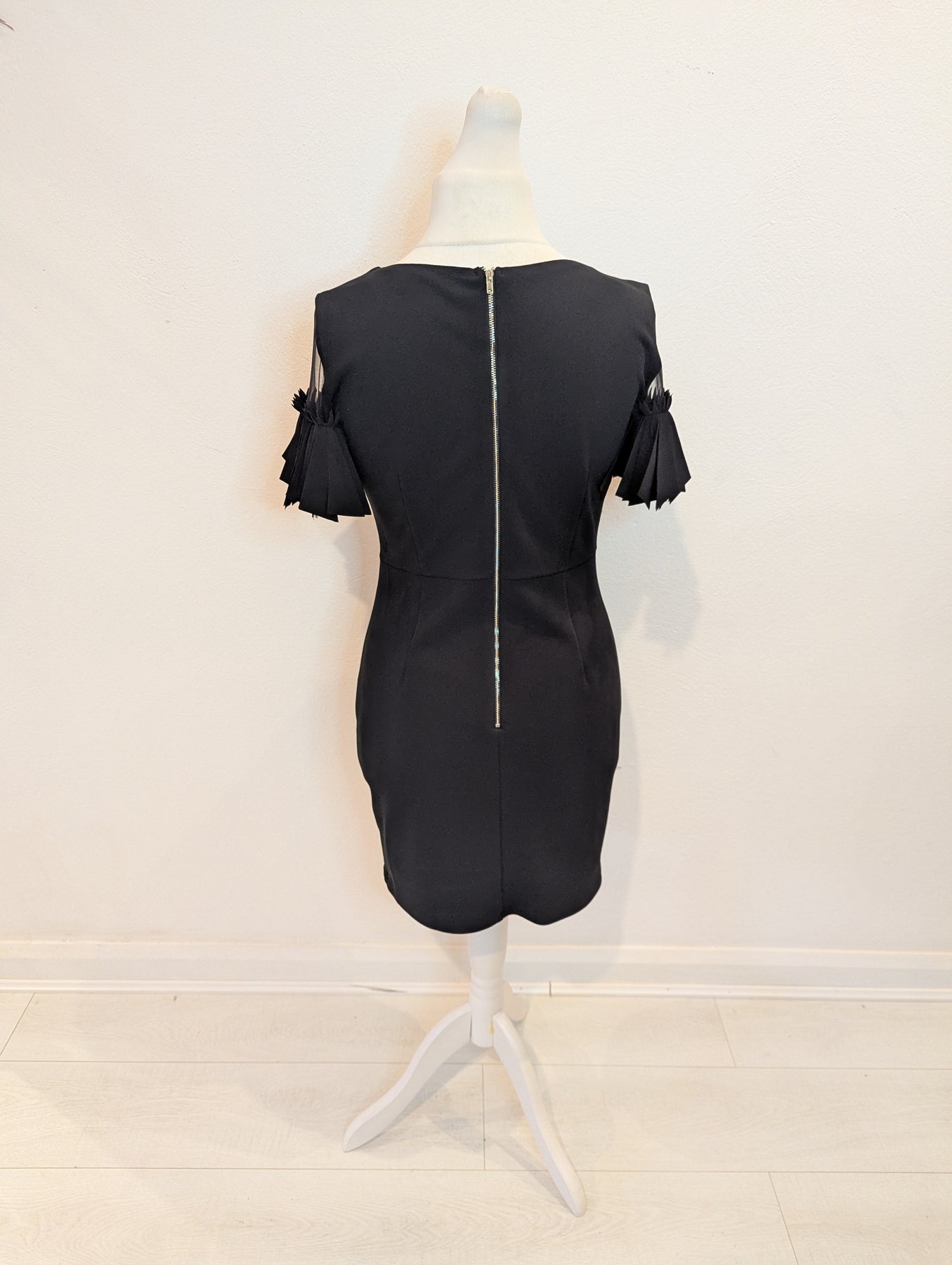 Condition: Excellent preloved condition no signs of wear. A dress to shape you in all the right places with a sheer and pleated sleeves. Back zip fastening