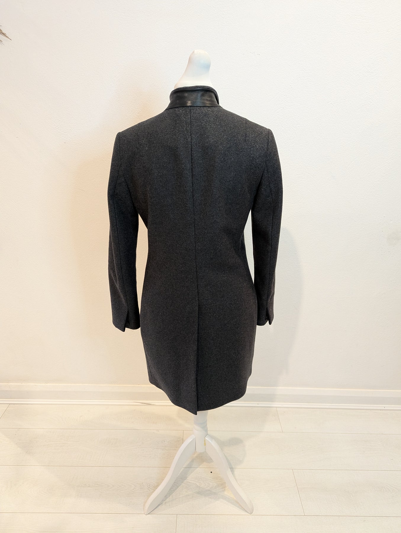 Condition: Excellent preloved condition no signs of wear. Elevate your outerwear with the Lorie coat from All Saints. Made from a soft wool blend, it has a tailored fit and leather contrast trims. 80% wool, 20% polyamide. Trims 100% leather