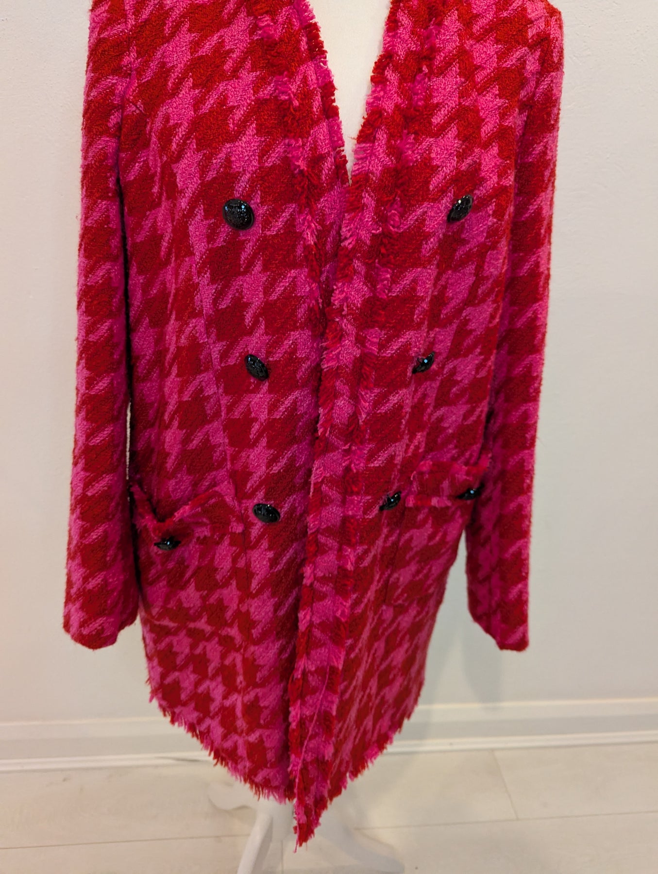 Condition: New with tags RRP £70. Vibrant coat with frayed edging and edge to edge design.