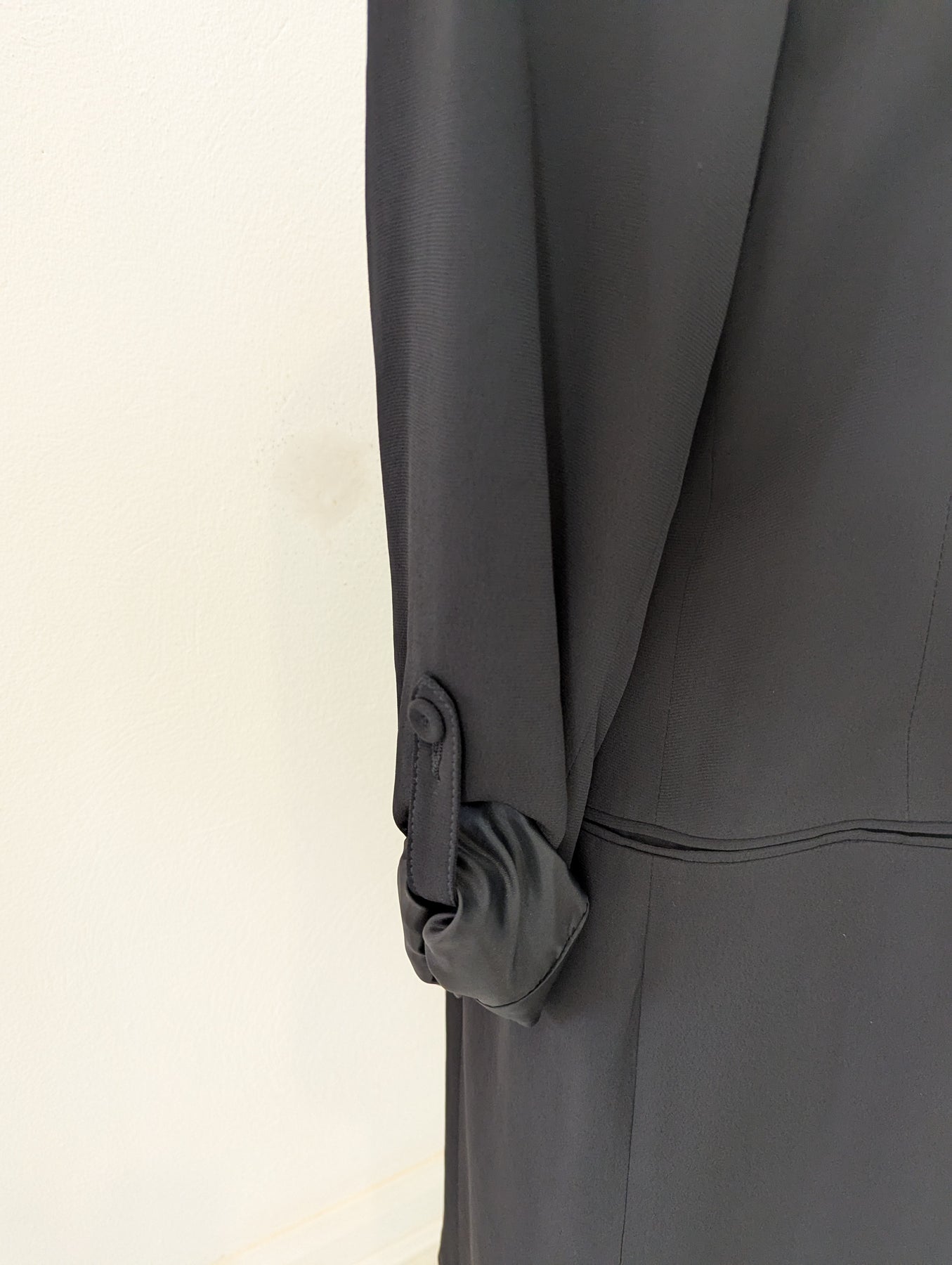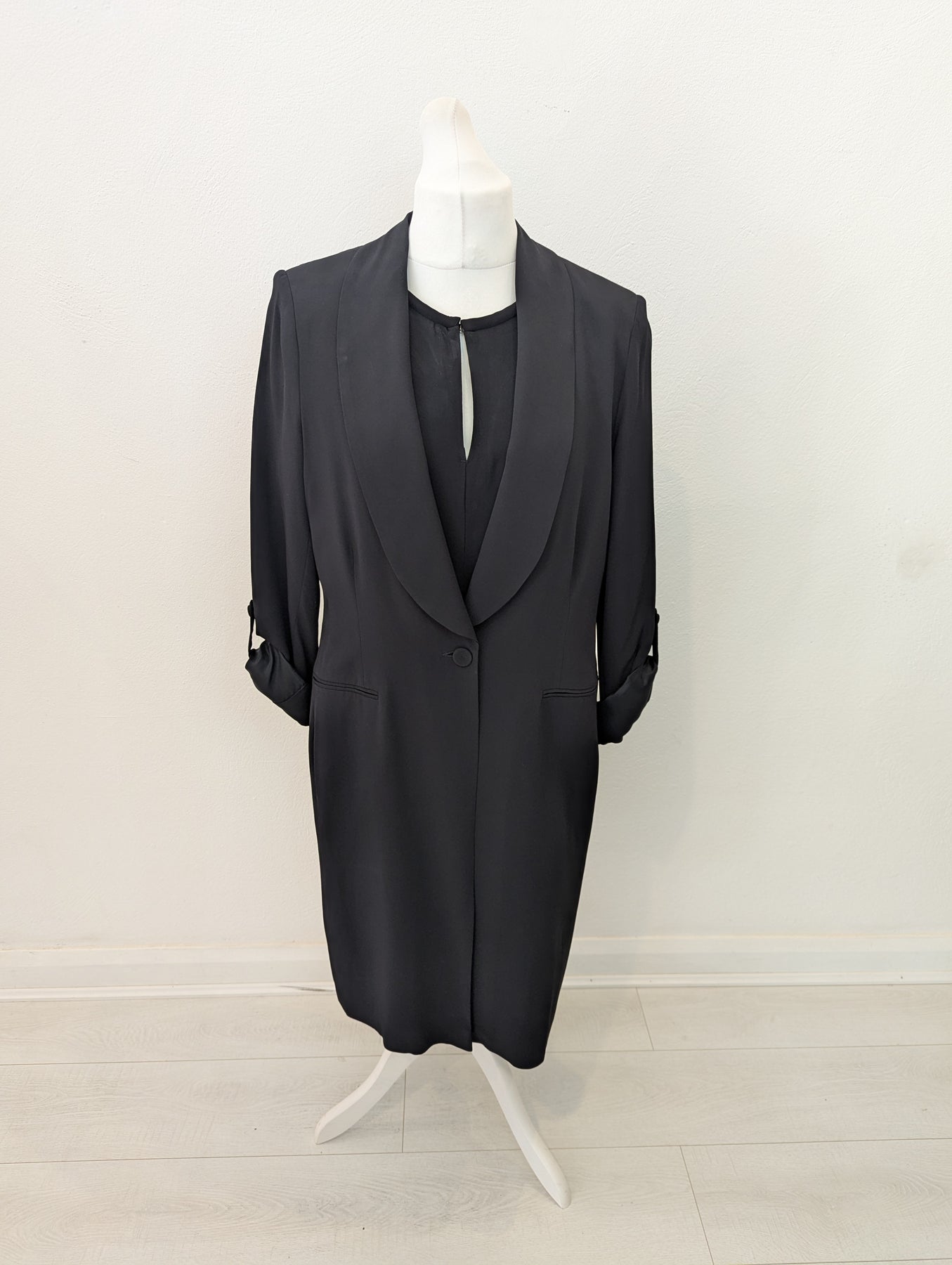 Condition: Excellent preloved condition no signs of wear. A stunning longline blazer style jacket that will add a touch of elegance to any outfit. Sleeves can be rolled up and secured