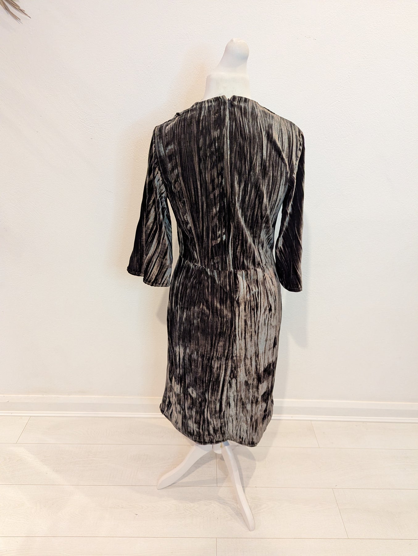 Condition: Excellent preloved condition no signs of wear. A luxurious feel and gold effect when the light hits make this dress a glam option for party season. Faux wrap style with 3/4 length bell sleeves