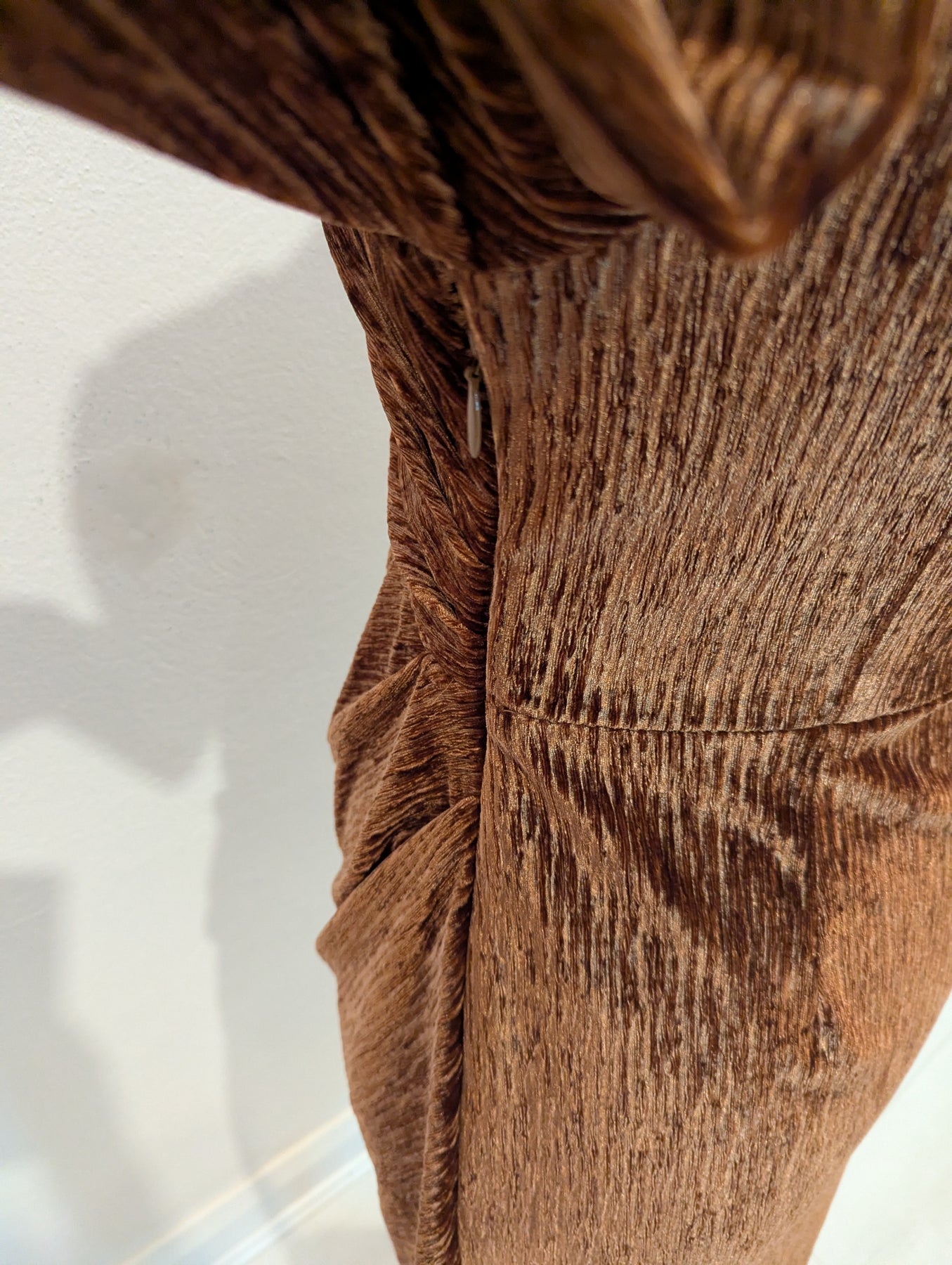 Condition: Excellent preloved condition no signs of wear. A figure flattering, velvet dress to make you feel a million dollars. Ruching to side and slight puff shoulder. Side zip fastening