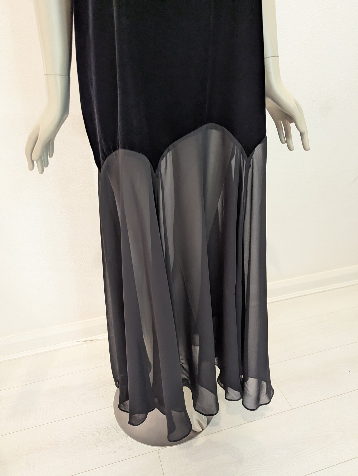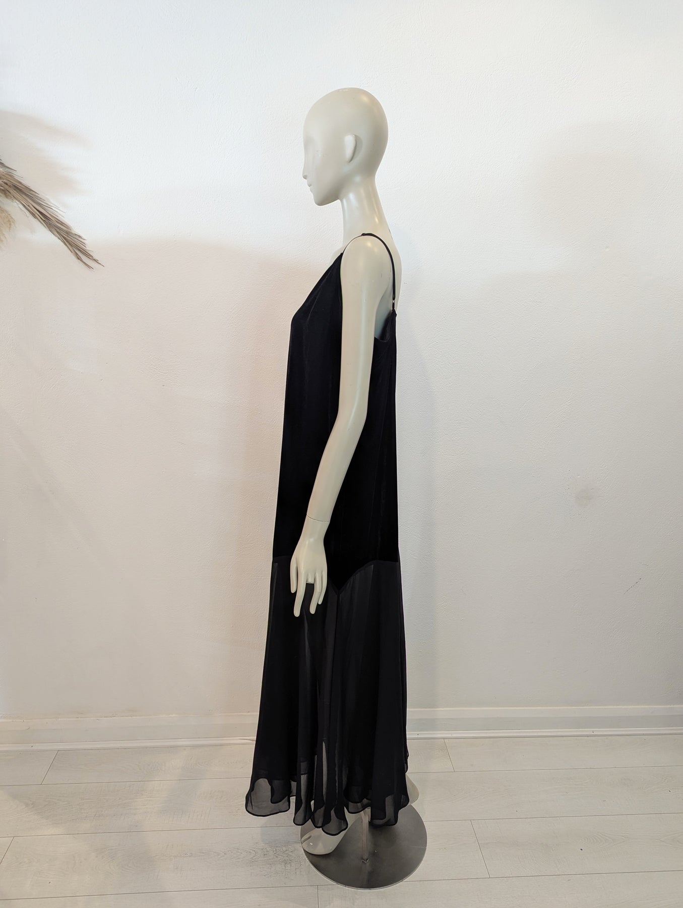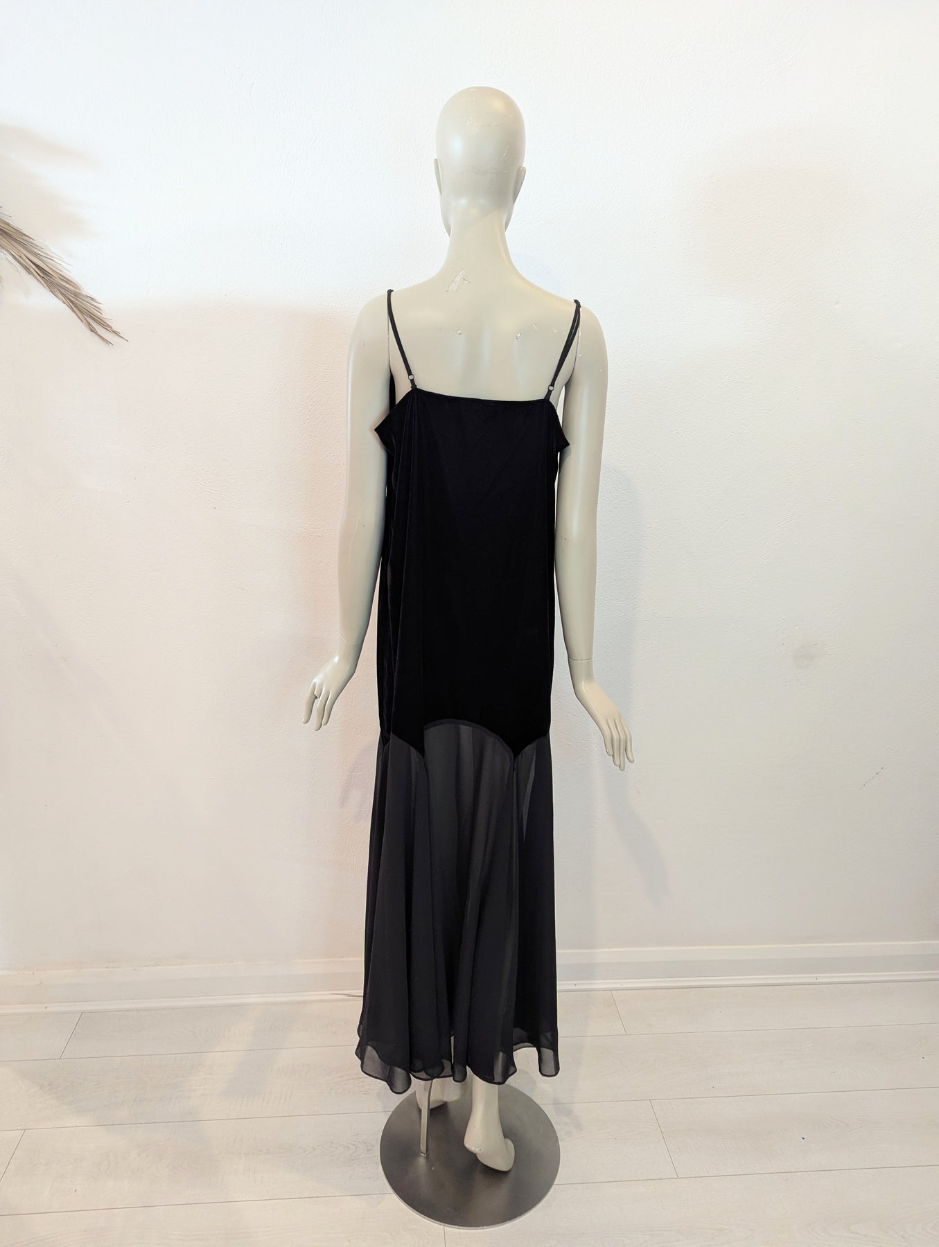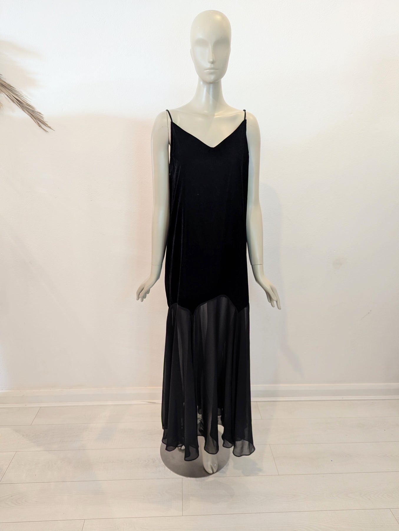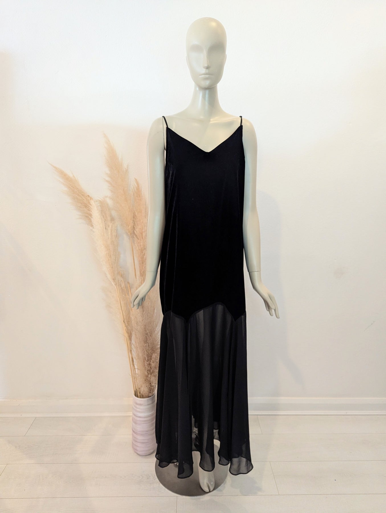 Condition: Excellent preloved condition no signs of wear. Luxe velvet flows into a romantic sheer skirt. V neckline with delicate straps which can be adjusted to fit