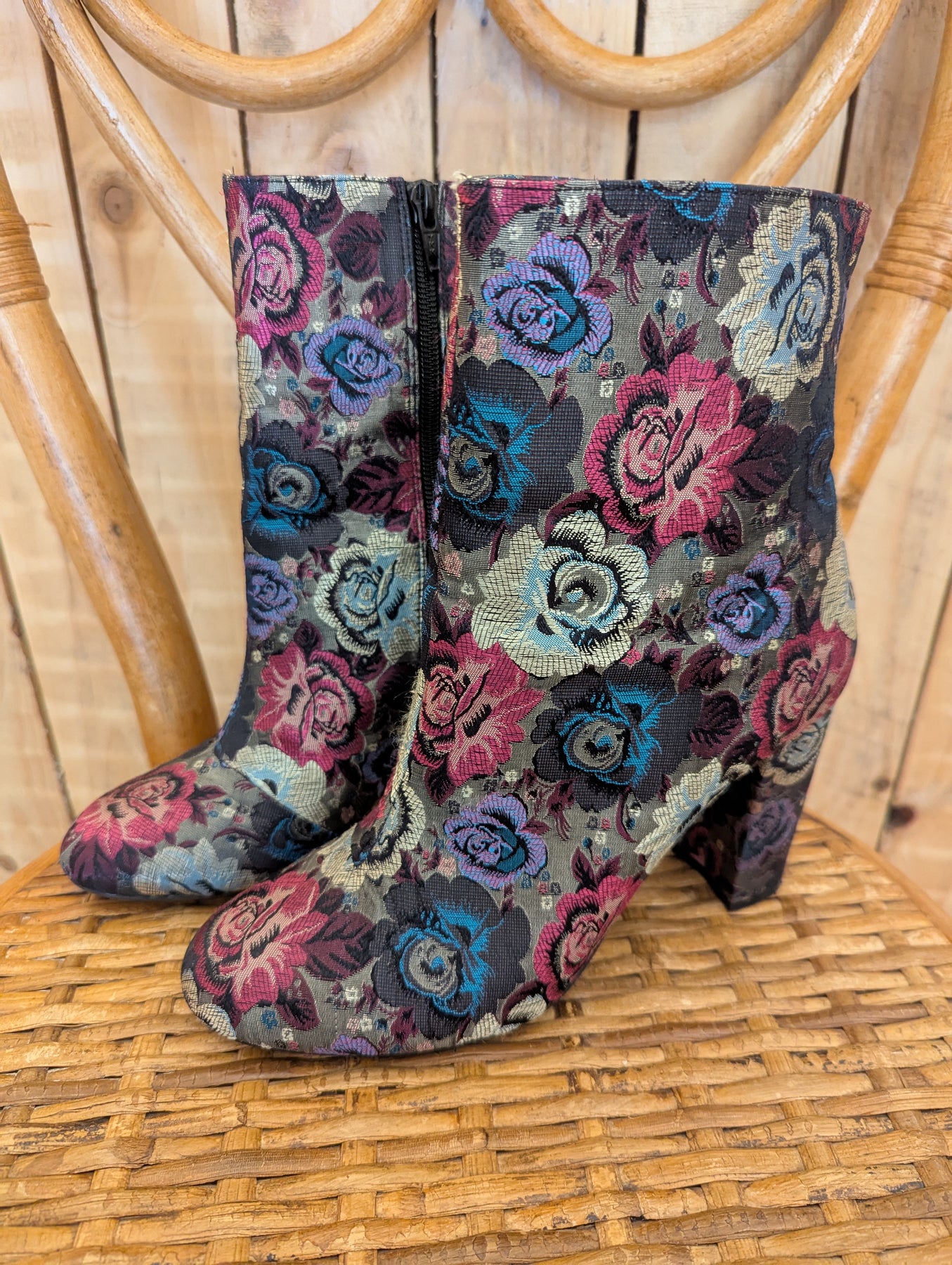 Condition: Excellent preloved condition no signs of wear. Stunning high heeled boots from Dune in a floral print with a gorgeous mix of blue, pink and purple