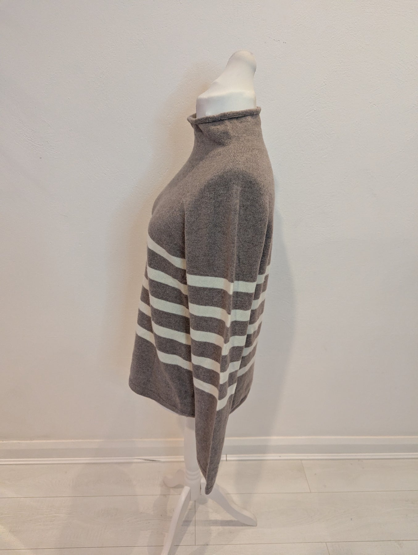 Condition: Excellent preloved condition no signs of wear. Super soft, high neck jumper from Uniqlo with contrast stripe. 70% wool, 30% polyamide