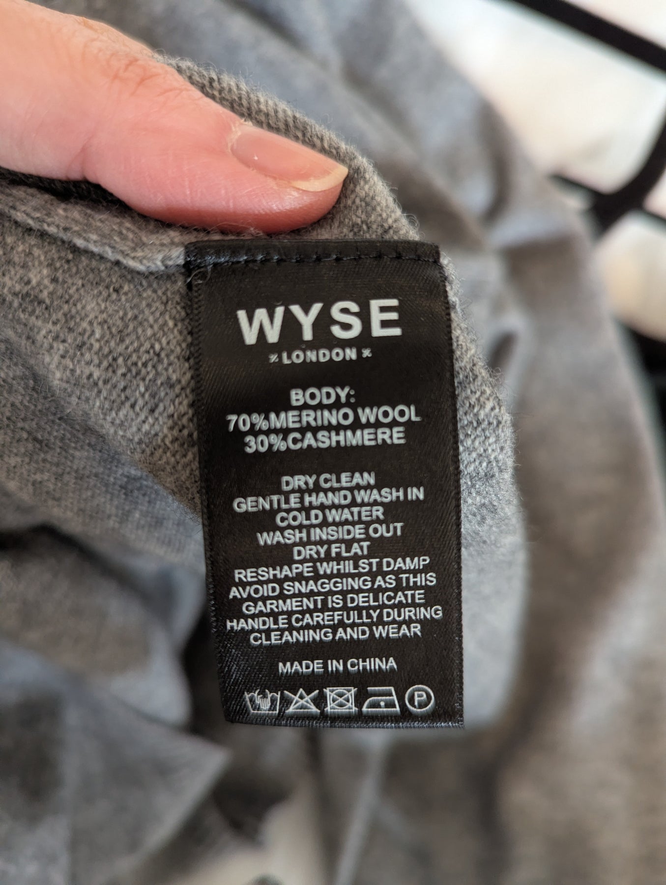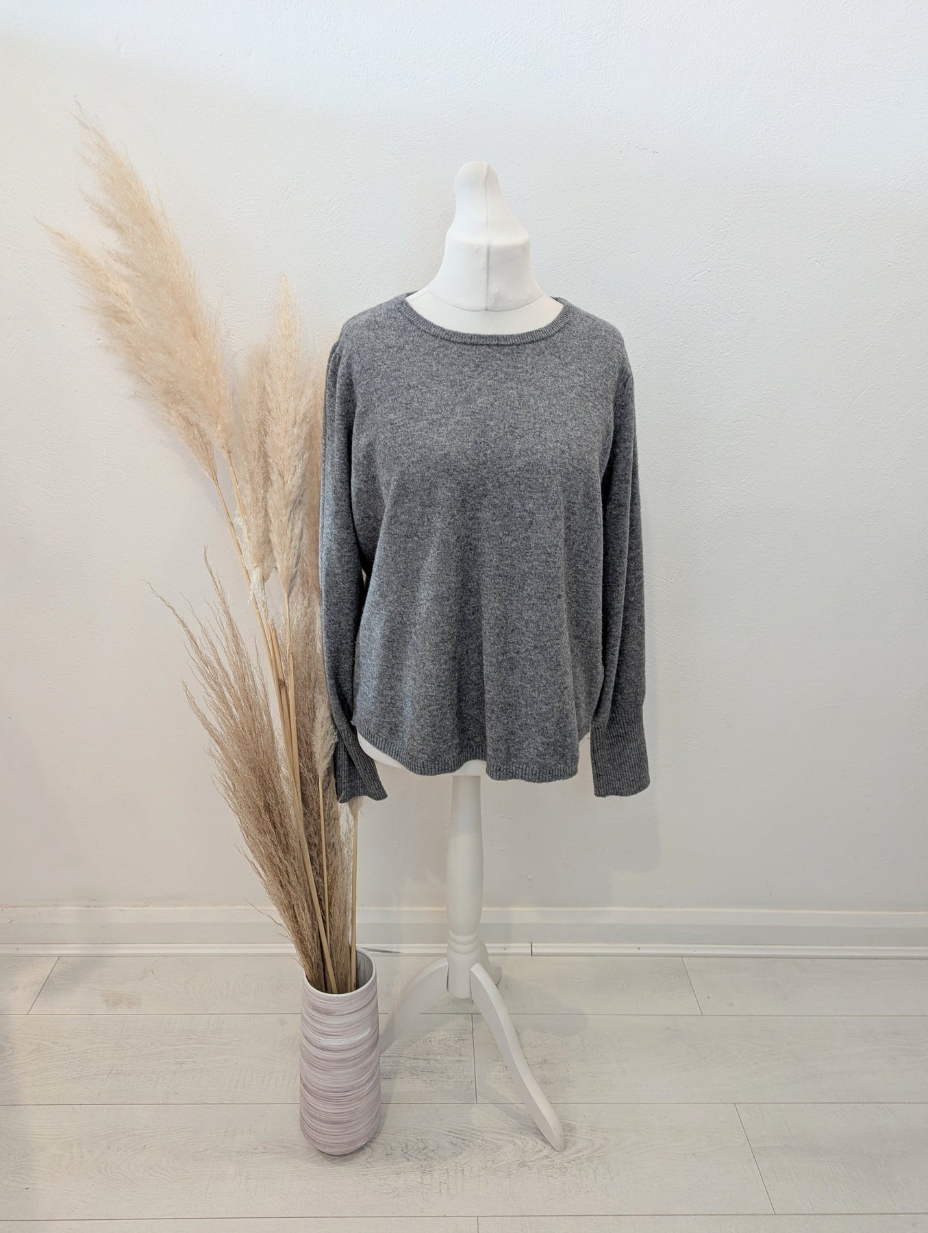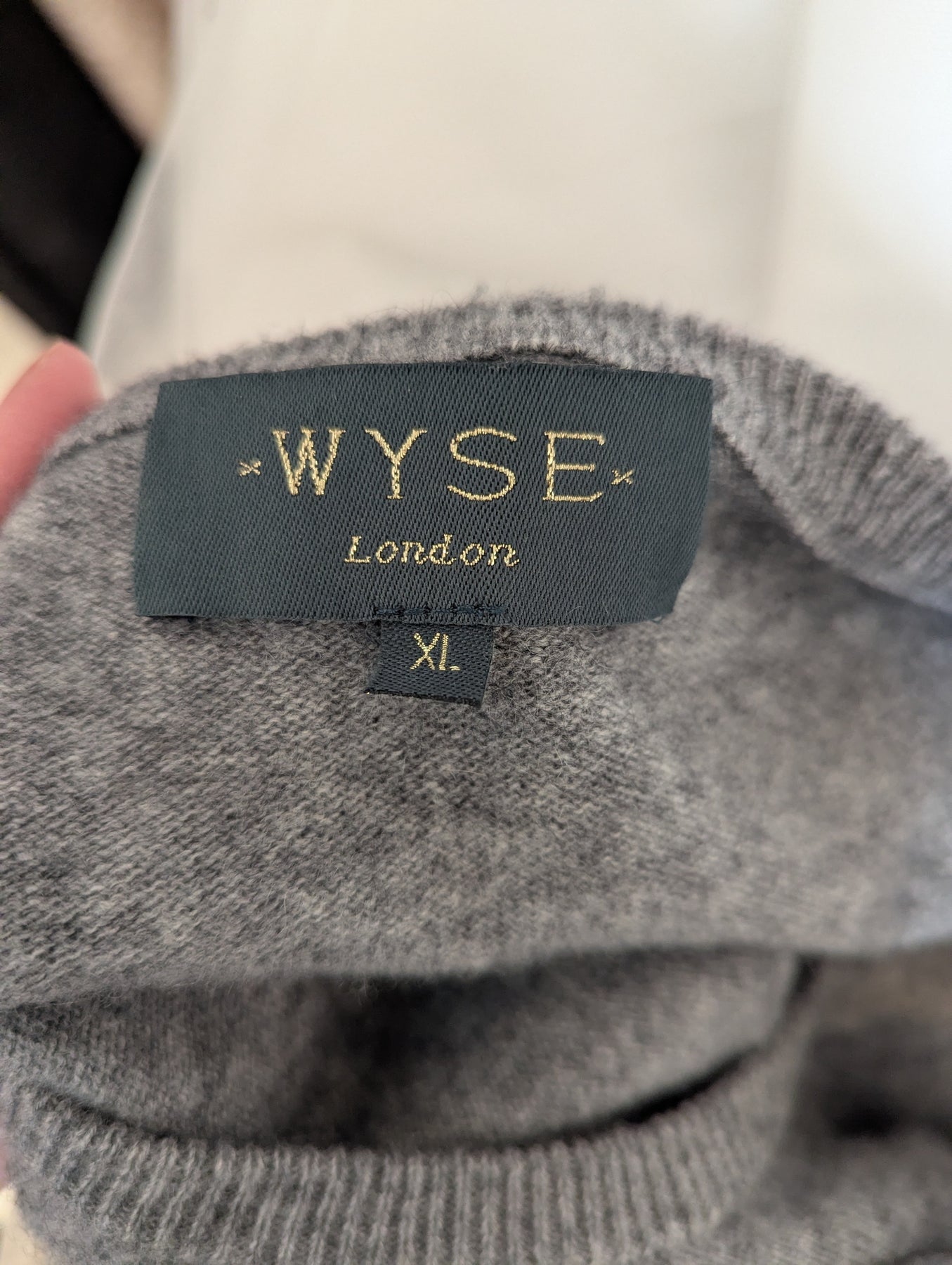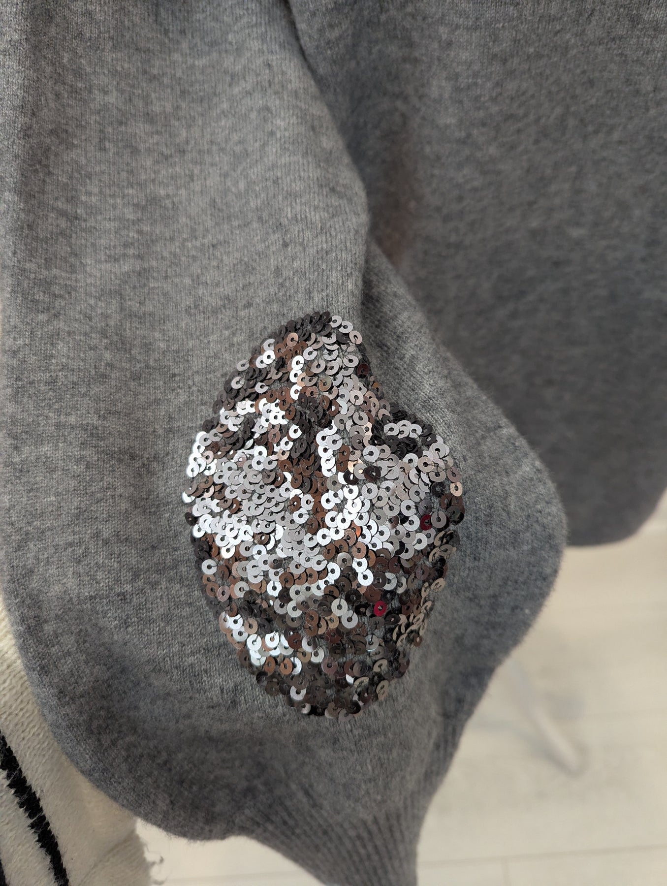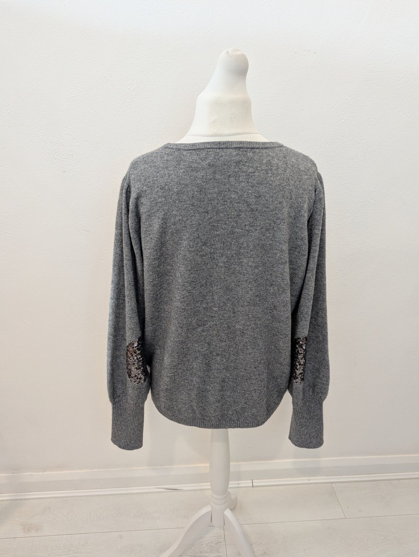Condition: Excellent preloved condition no signs of wear. A gorgeously soft cashmere and wool blend in a versatile grey colour way. Sequin patches at the elbows are a uniquely Wyse detail. 70% merino wool, 30% cashmere