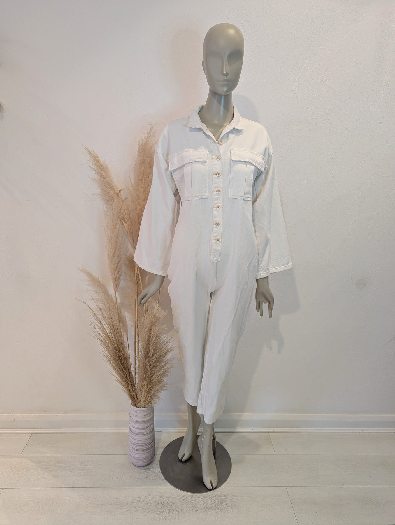 Condition: Good preloved condition, lots of wear left! Waist belt not included. An ankle length, relaxed fit jumpsuit, perfect for Spring/ Summer days. We love the wide sleeves!