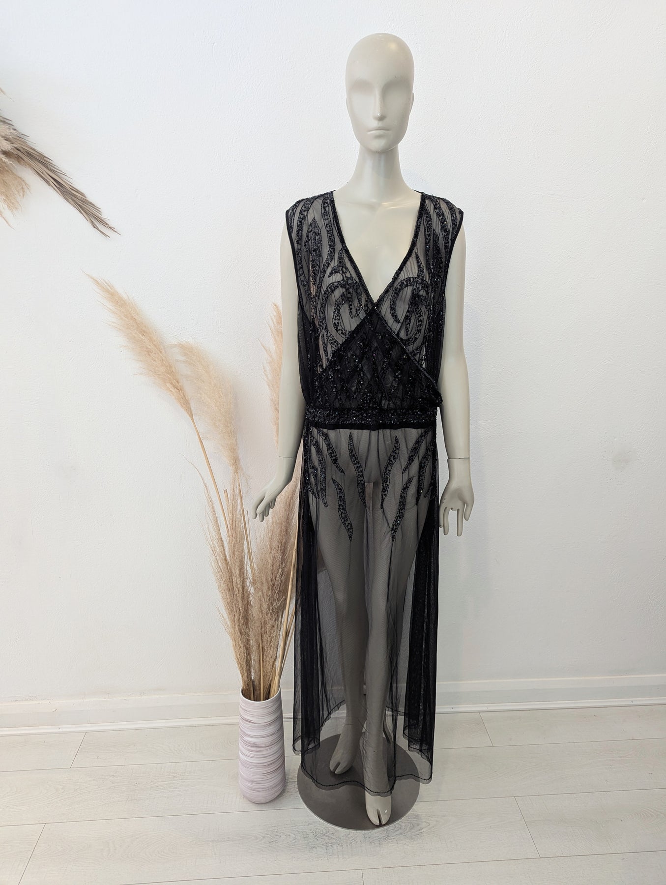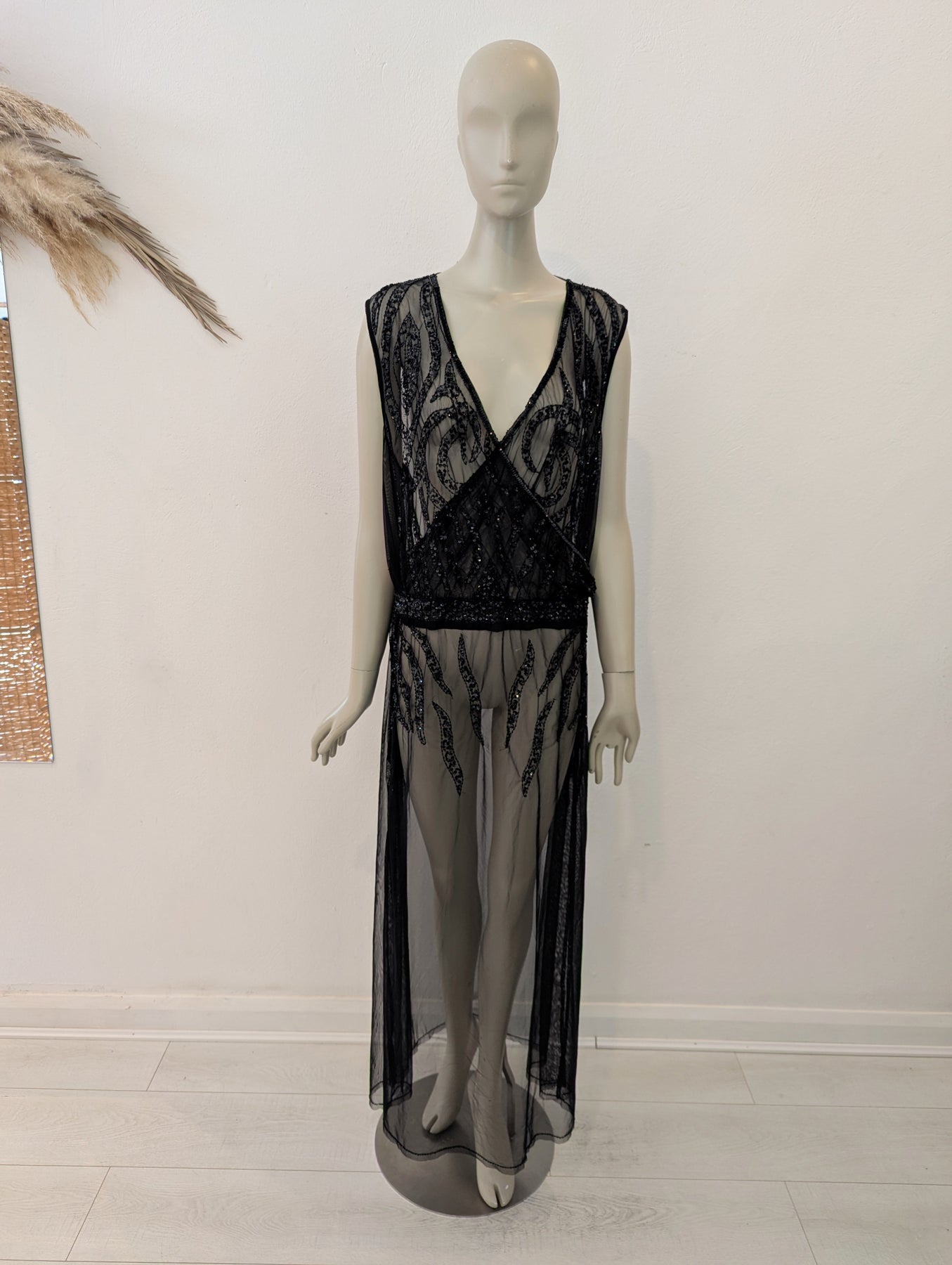 Condition: New with tags. This semi-sheer maxi dress is perfect for teaming with your swimsuit this Summer. It has striking jewel embellishment that sparkles effortlessly and with subtle side slits, it's great for keeping cool in the heat. The relaxed kaftan fit & shapely v neck creates a super flattering figure