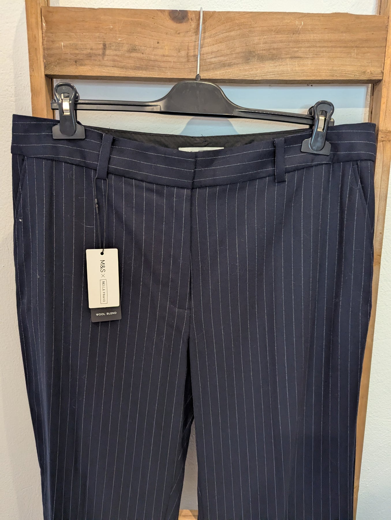 Condition: New with tags, blazer RRP £129 and trousers RRP £89. The collaboration between M&S and Bella Freud was sought after and the standout piece, this pinstripe trouser suit, has a real contemporary feel while also being completely timeless