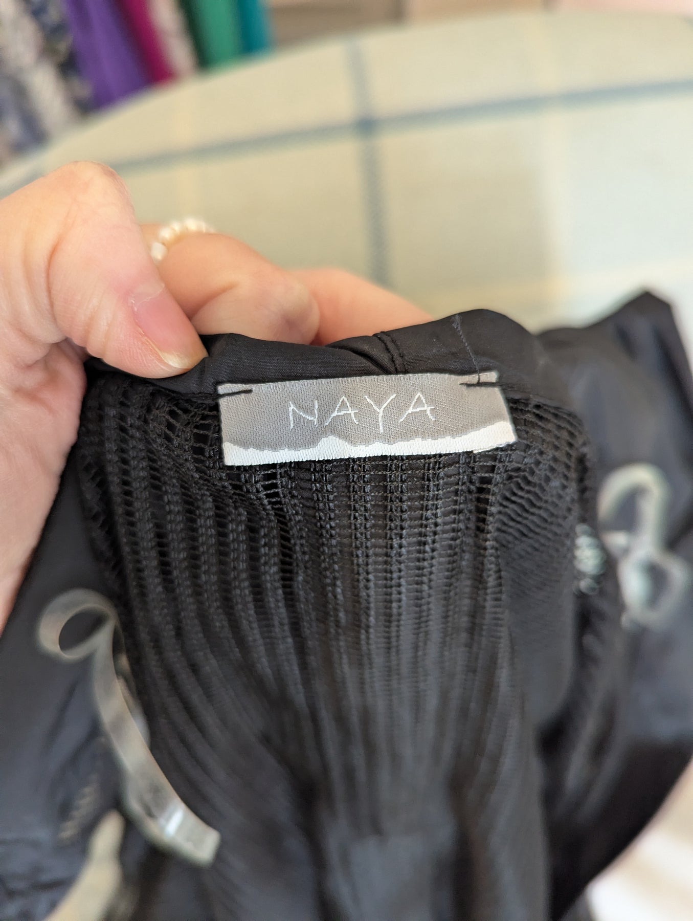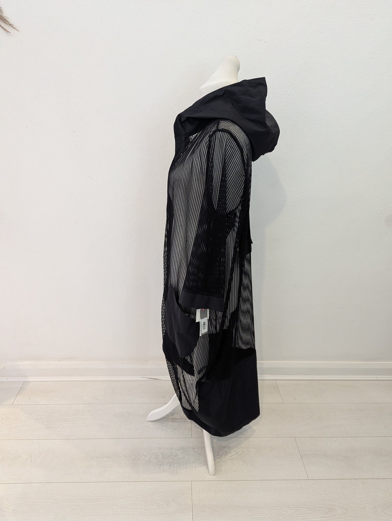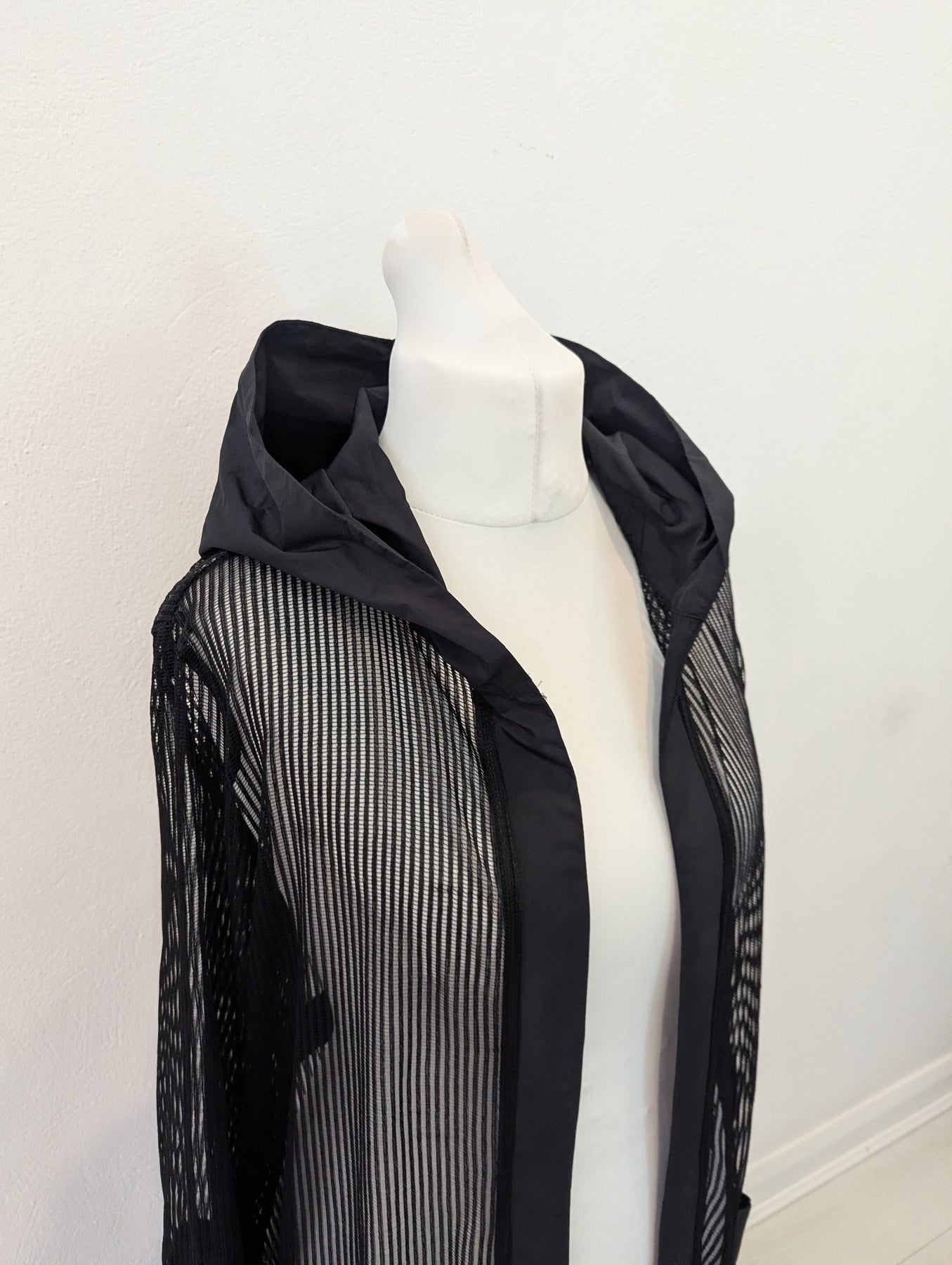 Condition: New with tags RRP £179. The versatility of mesh is showcased in this long line jacket from Naya. With contrast pockets and edge to edge trim, it’s a piece that will work in any wardrobe.