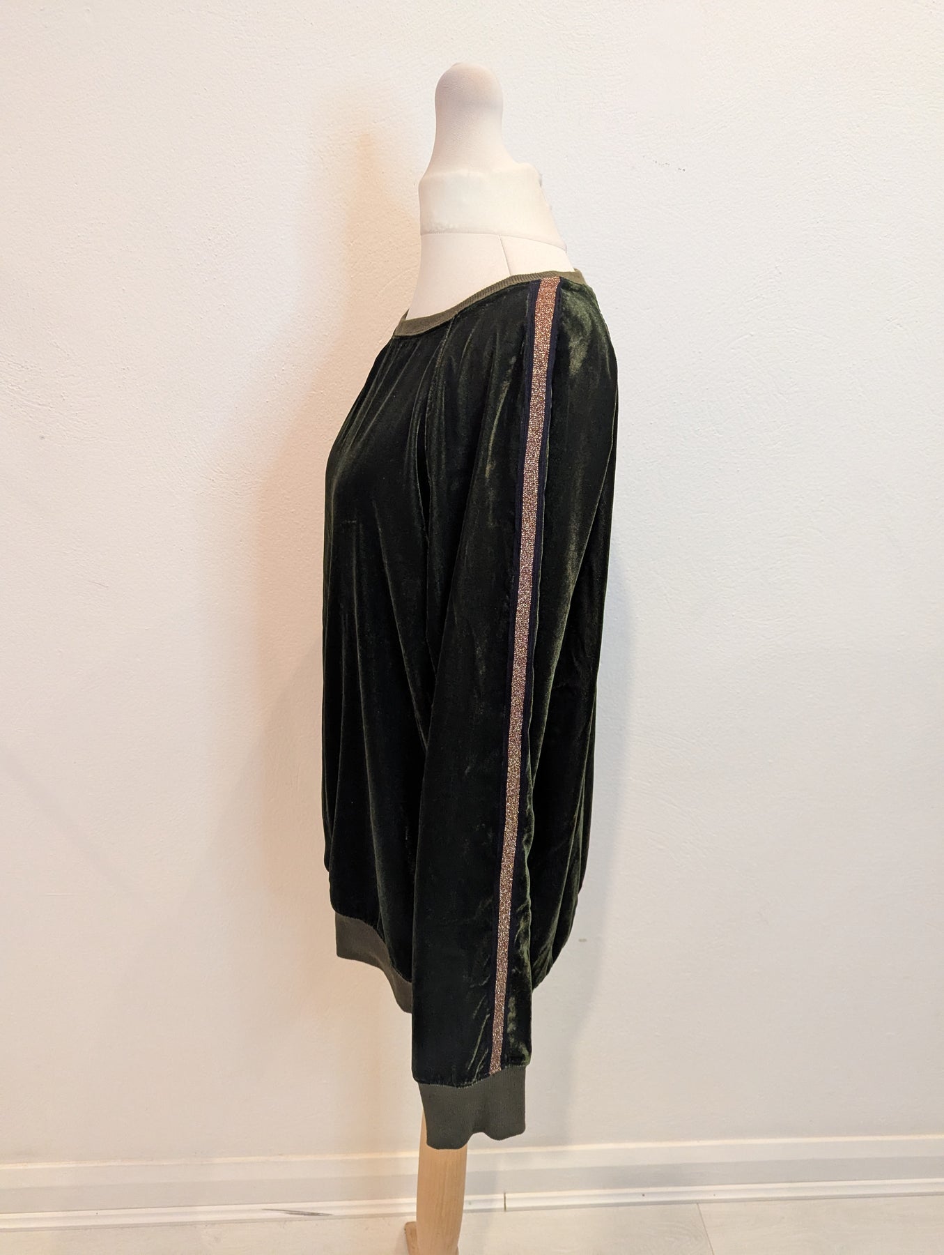 Condition: Excellent preloved condition no signs of wear. This Nooki velour jumper is a stylish and comfortable choice with a touch of sparkle. The stunning gold glitter stripe adds a playful touch